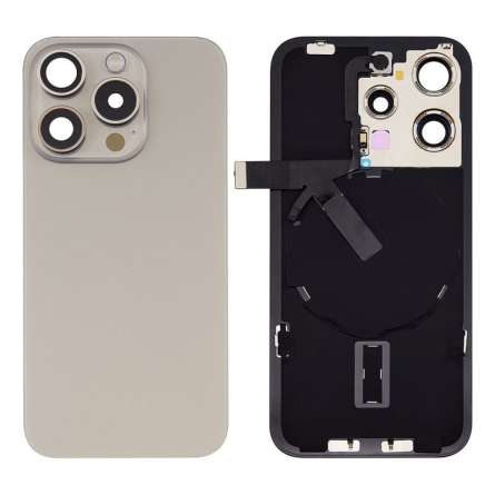 Vitre Arrière Titane Gris Avec Chassis et Vitres Camera Pour Iphone 15 Pro Max Avec les Aimants et la Nappe NFC
